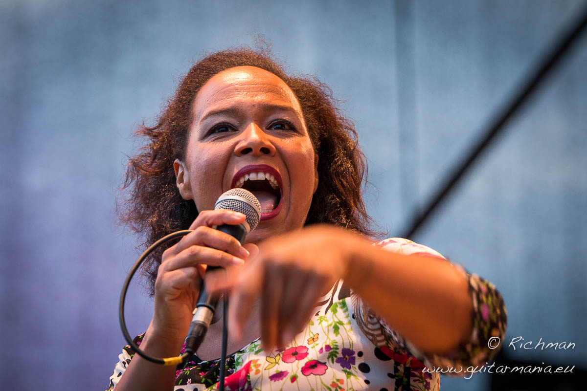 Nach einer kurzen Umbaupause hieß es dann Vorhang auf für die MIKA STOKKINEN Band, die sich mit STELLA JONES stimmgewaltige Unterstützung auf die Bühne geholt hatte. Begleitet wurde Mika von Hermann Aigner am Schlagzeug, Andi Hadl am Kontrabass, Gerry Lülik an der Mundharmonica und Stefan Haslinger am Piano und an der Hammond Orgel. Es war eine Freude, der Formation zu lauschen. Nicht zu kurz kam beim Set auch die gemeinsame Liebe für den Soul, und so wurde folgerichtig verschiedensten Vertretern des Genres, wie beispielsweise SOLOMON BURKE, Tribut gezollt.