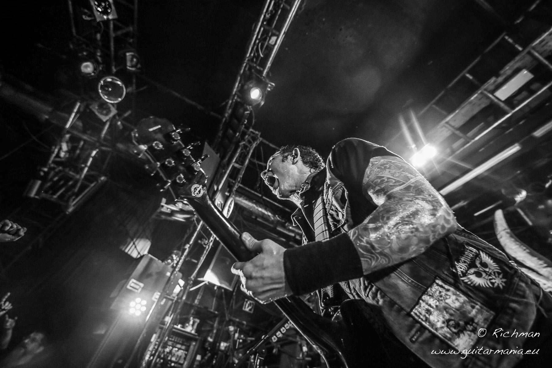 Sie konnten. Und wie. Selten so eine gute Stimmung bei einem Konzert erlebt. Vorband gab es an diesem Abend keine. Und das war auch gut so. Hielten sich die Fans doch bis zur letzten Minute im Hof der Szene unter freiem Himmel auf. Als dann der Tontechniker bei den Klängen von IRON MAIDENs „Run to the Hills“ die Lautstärke-Regler Richtung Norden schob, machte man sich schnell in Richtung Halle auf, in der das Quecksilber innerhalb kürzester Zeit die Sauna-Marke erreichen sollte.