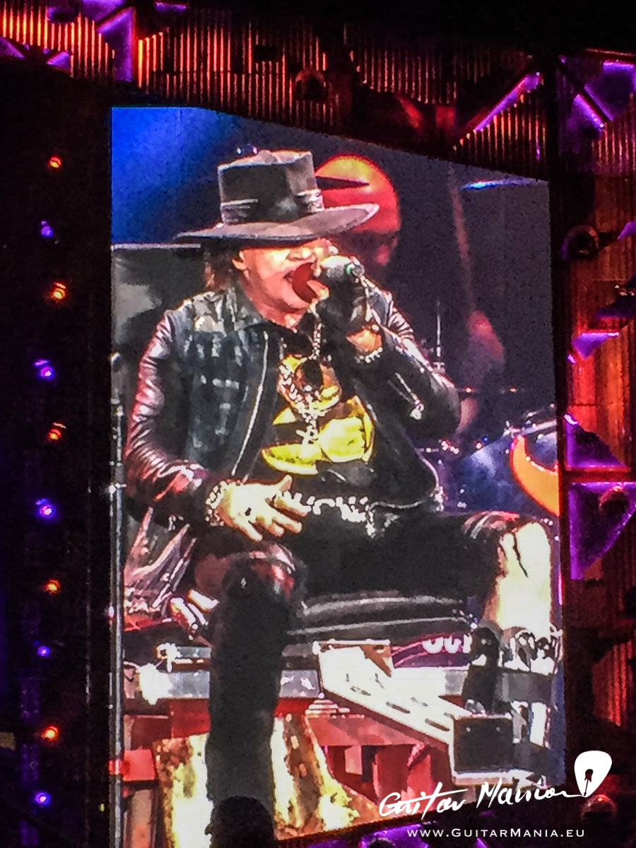 Schon beim Opener "Rock or Bust" konnte diesbezüglich jedoch bereits Entwarnung gegeben werden. Gesanglich fügte sich Axls Stimmlage gut in die Gesamtperformance ein. Es dauerte für unser Empfinden jedoch eine gute halbe Stunde, bis der Mann am Mischpult die Verhältnisse soweit im Griff hatte, dass auch wirklich eine klare Differenzierung von Axls Stimme möglich war. Überhaupt schien Axl mit seinem, dem MAD MAX Filmrequisiten-Kabinett entnommenen Stuhl, gerade erst der "Chinese Democracy" Bruchlandung entstiegen zu sein. Doch allen Schmährufen zum Trotz, machte dieser einen wirklich guten Job und performte in Wien einen nicht unbeträchtlichen Teil des Abends sogar stehend! Hut ab.