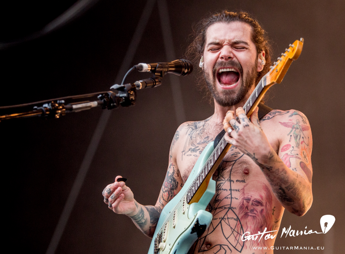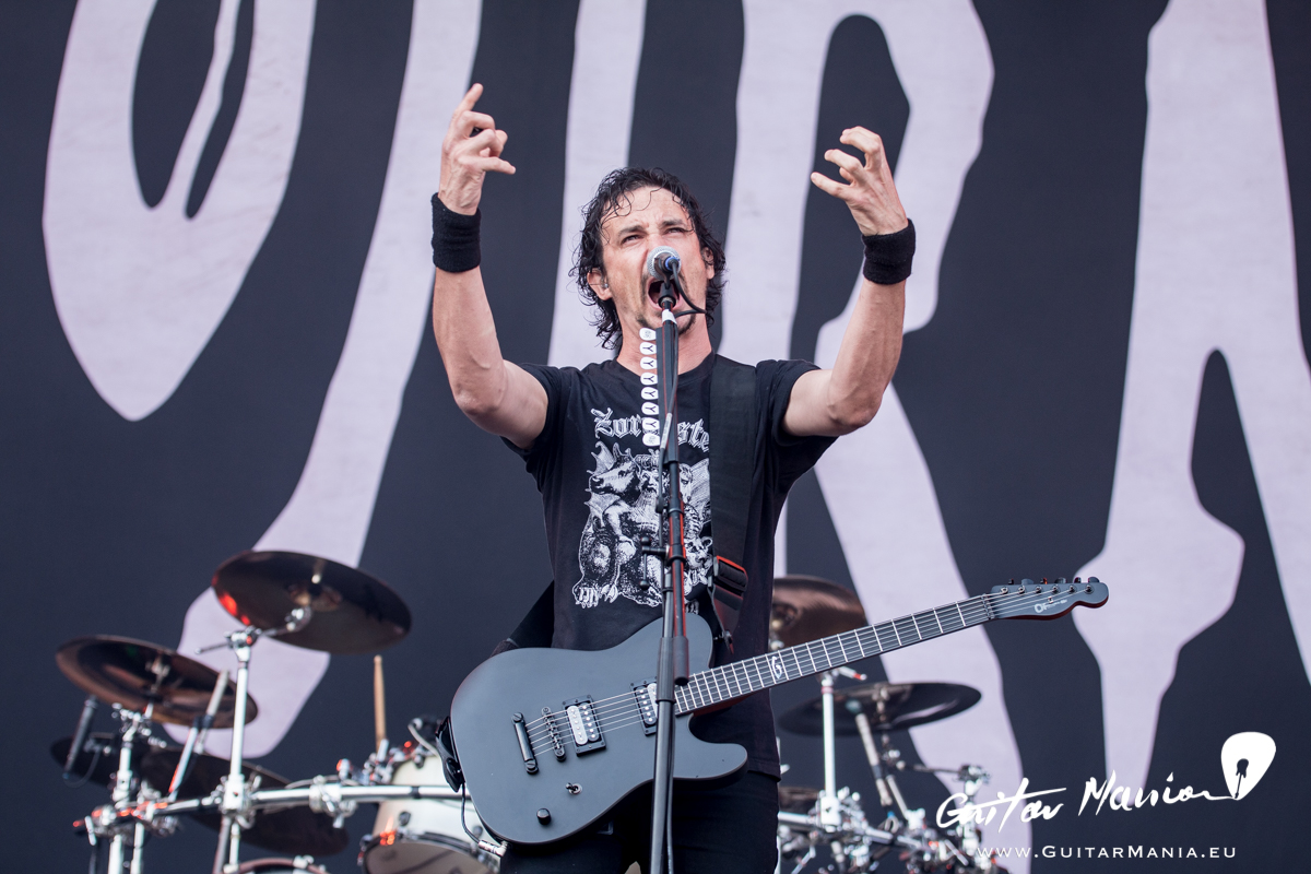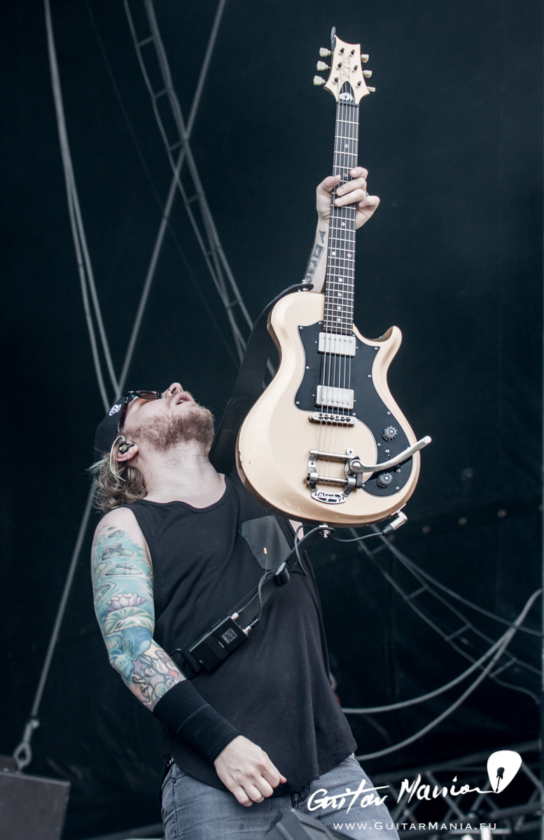 Ein wahres Feuerwerk an großen Namen, zumindest was Künstler an der Sechsaitigen betraf, hatte man am dritten und letzten Tag des Festivals aufgeboten. Mit seinem brandneuen Album "Dust" enterte MARK TREMONTI kurz vor 14:00 zunächst noch bei strahlendem Sonnenschein die Soulstage und überzeugte mit einer guten Performance nicht nur auf dem Instrument, sondern auch als Sänger.