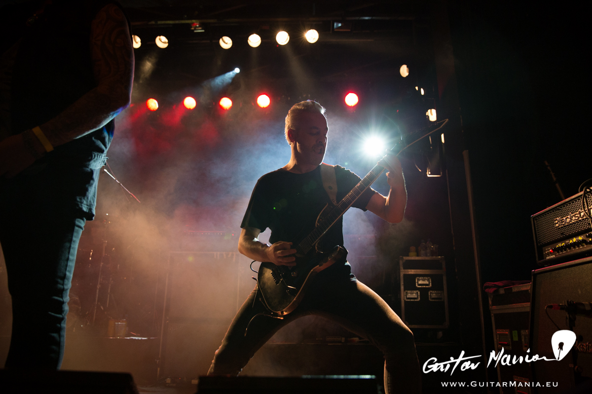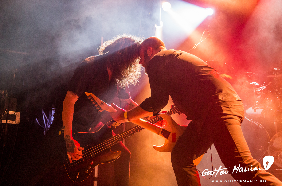 David und Sylvain, aber auch Bassist Ola Flink trumpften an diesem Abend mit einer Spielfreude auf, die man so und in dieser Form nicht alle Tage erleben durfte. Die Band zeigte sich perfekt eingespielt, und peitschte mit Songs wie "Death in General", "The Living Infinite I" und "Whirl of Pain" hoch motiviert durchs Programm. Man konnte der Saitenfraktion ansehen, dass sie derzeit eher auf größere Bühnen eingestellt sind. Wurde der Raum doch manches Mal fast zu knapp, um der Show der fünf Derwische entsprechend Platz einzuräumen.