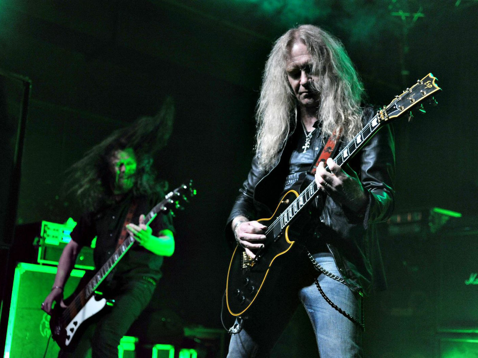 Und so ergab sich ein gelungener Mix aus altem und neuem Material, bei dem Kracher wie „Sacrifice“ oder das eingängige „Guardians of the Tomb“ sich mit Klassikern wie „Wheels of Steel“ oder „747 Strangers in the Night“ abwechselten. Für Überaschung sorgten dann aber auch Nummer wie „Conquistador“ oder „Got to Rock“, die nicht immer unbedingt auf einer SAXON Setlist stehen. Der Mixer drehte die P.A. Anlage bis zum Anschlag auf. Nicht das erste Mal, dass einem bei einem SAXON Konzert gehörig die Gehörgänge durchgepustet wurden. Laut sollte man es ja nicht sagen, aber hier wäre ein etwas weniger and Dezibeln wohl ein etwas Mehr an Transparenz gewesen.