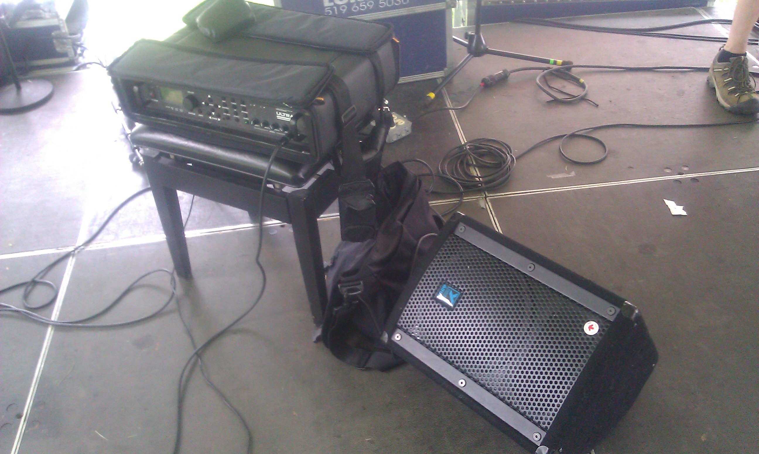 AxeFx Ultra through QSC K10, with FCB 1010 midi controller.